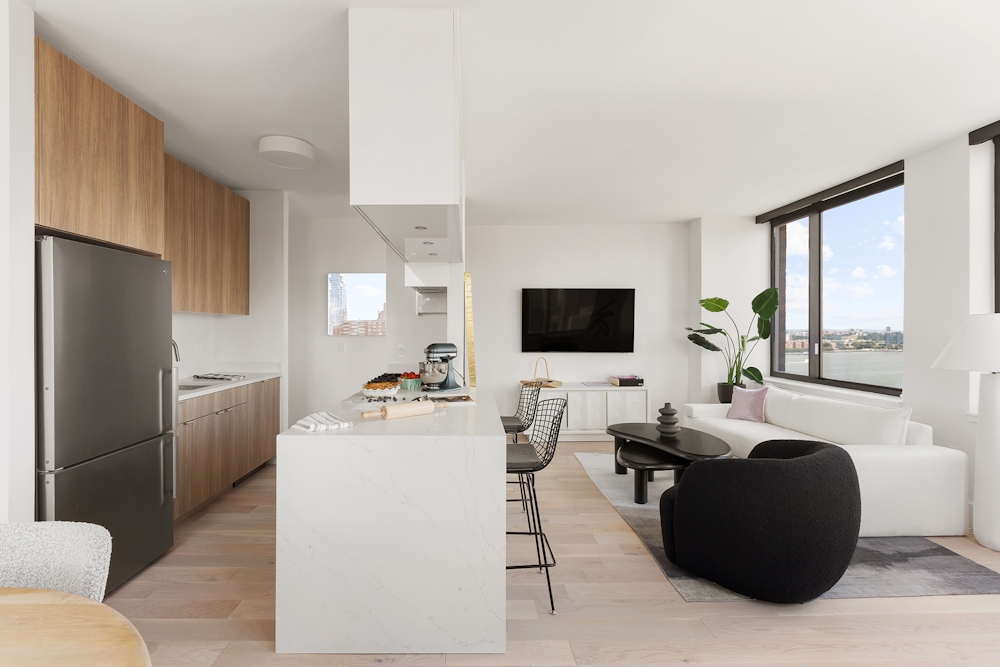 Soaring 42 stories above the Hudson River, TriBeCa and Battery Park City, Tribeca Pointe is the tallest residential building in the North Cove and one of the most spectacular apartment rental buildings in Battery Park City. The waterfront tower offers studio, one- and two-bedroom residences with spectacular vistas. Residences perched above a dramatic double-height vaulted marble lobby are specially designed to offer breathtaking views of the Hudson River and the Manhattan skyline.
