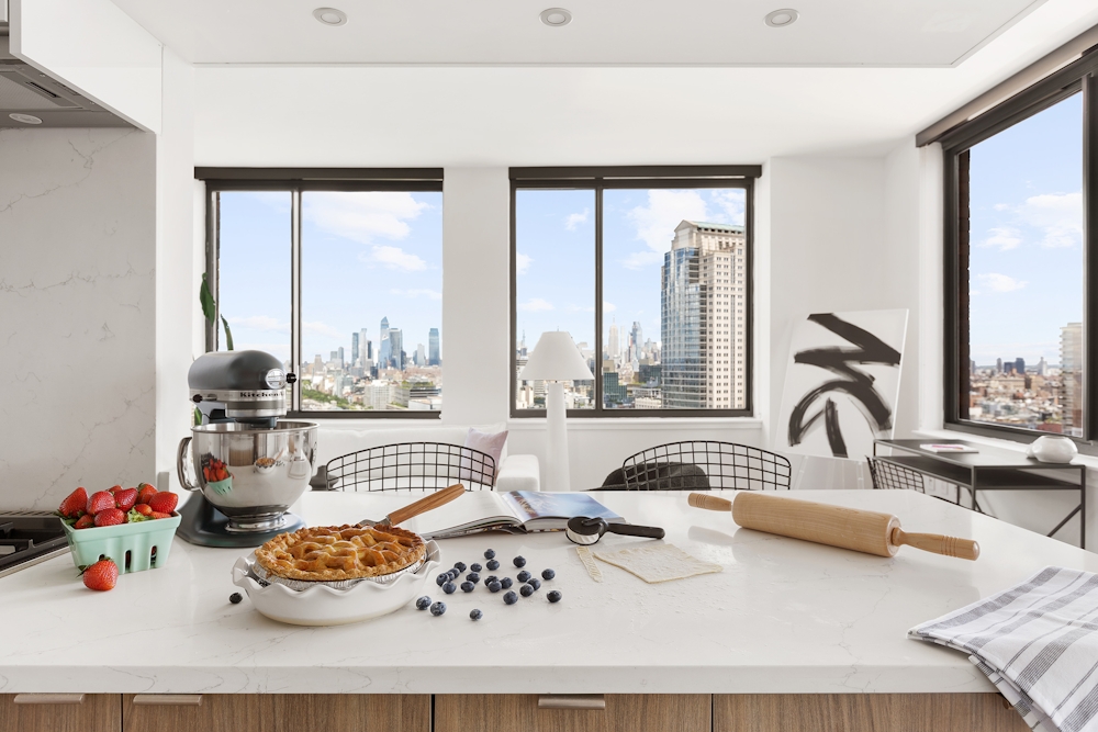 New to the market . Residence 4104 at Tribeca Pointe is newly renovated corner two bedroom with dining area , pass through kitchen , two full marble bathrooms, walk-in closet , and views of Midtown Manhattan and Hudson River . Residents can enjoy our Roof Deck Solarium with gas grills and open views. Along with a brand new fitness center with new equipment .