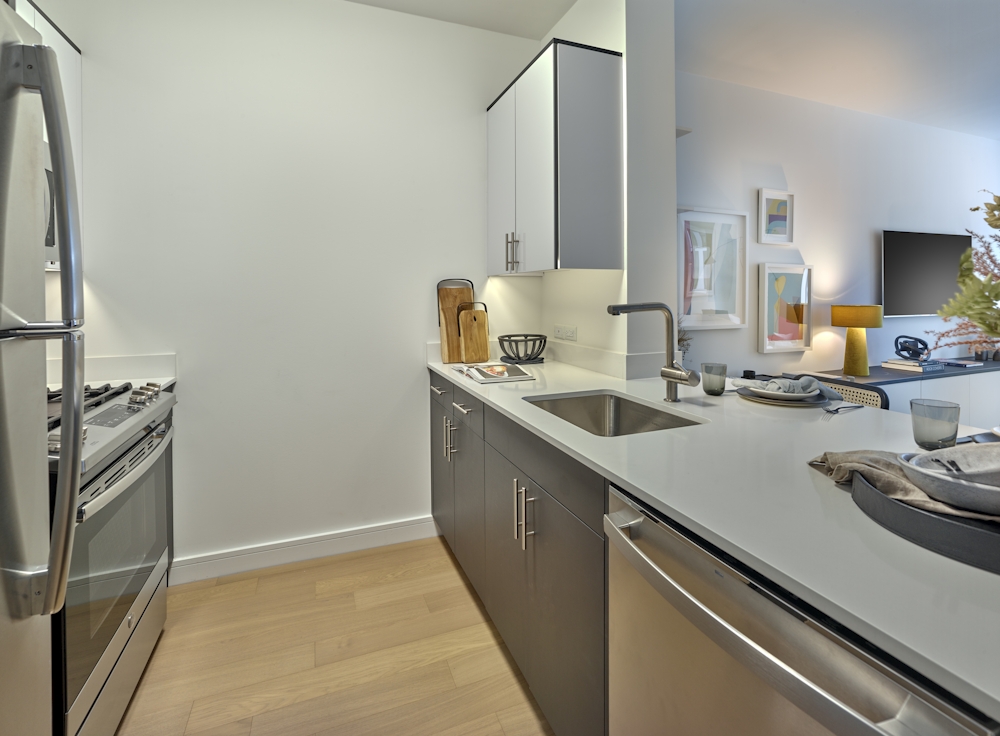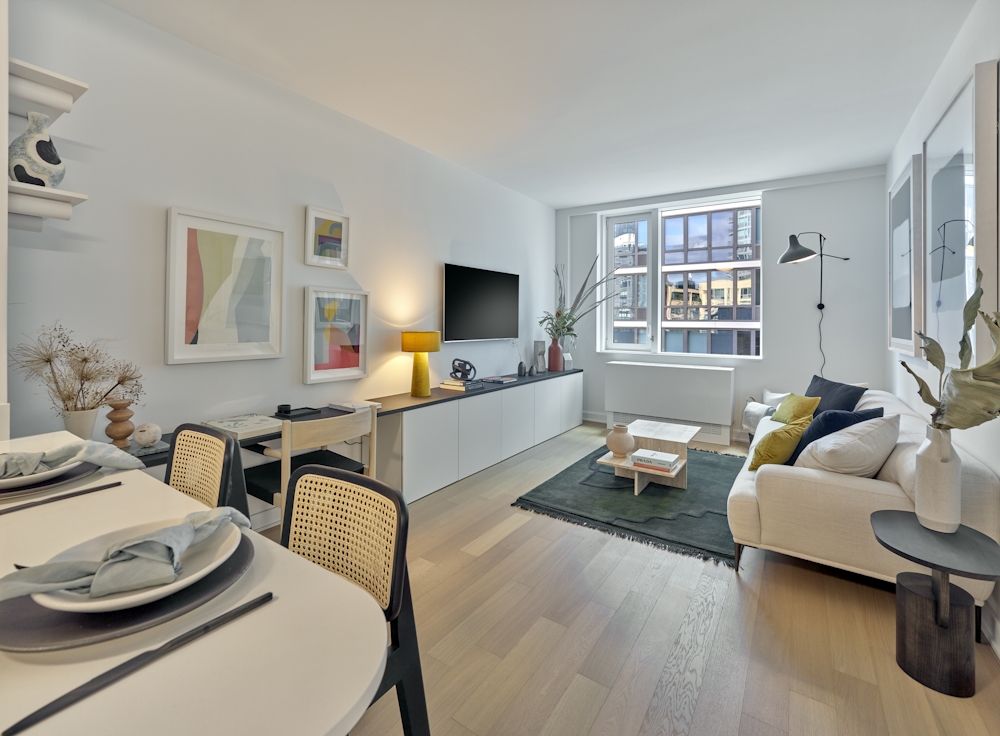 Welcome to Residence 807! This spacious 2-bedroom corner home situated at the Southwest corner of the building, features a large open kitchen, high ceilings with oversized windows, split bedrooms, and two full bathrooms! For New Residents: 1 month free on a 12 month lease and $1000 move in bonus, gross rent is $6495. $1000 Security Deposit for Qualified Applicants. Located in the heart of Court Square, The Cove features a state-of-the-art fitness center, multiple outdoor spaces with grills, multiple indoor lounges, and storage. Our homes feature modern wide plank flooring, stainless steel appliances, in-home laundry, and lots of storage. DISCLAIMER: Rockrose Development L.L.C. is the exclusive broker/agent for the landlord (Landlords Agent) for this property. Prospective renters, their brokers and/or agents understand that neither the landlord nor Landlords Agent will charge or collect fees to a prospective renter in connection with this property except for administrative and/or application fees as permitted by law. Nor will landlord or Landlords Agent assume responsibility for any brokerage fees incurred by a prospective renter in connection with this property. Any broker/agent who contacts management in connection with this listing, who is not the exclusive broker or who does not have a Landlord Broker Agreement, is not the landlord's broker/agent and will not be paid by landlord. Brokers shall not publish or otherwise advertise any listing without the express written consent of the landlord. This listing is being advertised to prospective renters. FEE DISCLOSURE: Please be further advised that tenants may incur fees and charges in connection with the rental of Landlords properties pursuant to the terms of the lease agreement, including, but not limited to, application fee, amenities fee, parking late fees, pet fees, insufficient funds, window guards, key replacement, and third-party utilities. * Listed rent is net effective rent, based on a gross rent of $6495.00 and 1.15 Months FreeApartment Features